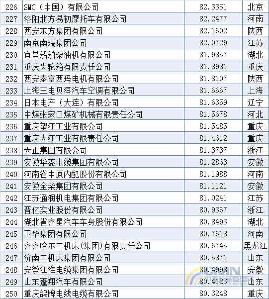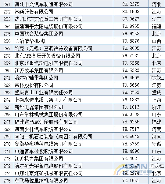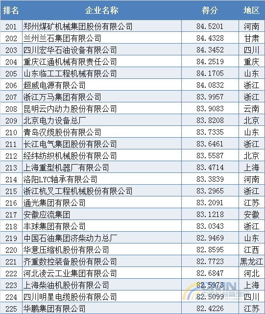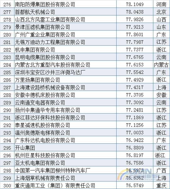 2010年中國(guó)機(jī)械500強(qiáng)排名(201-300)
