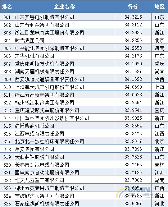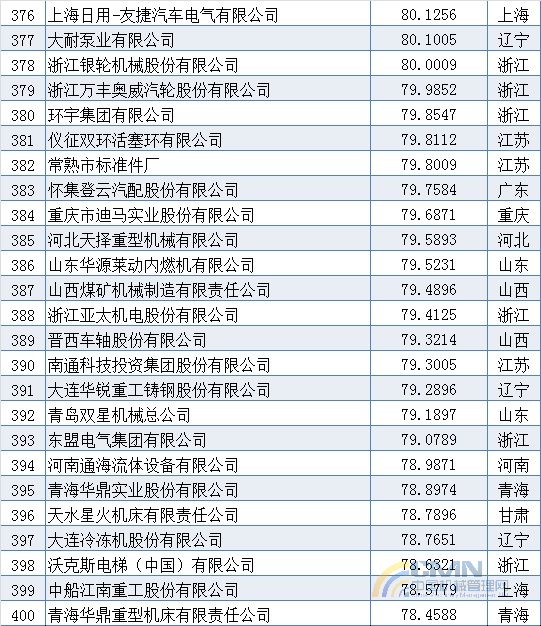 2011年中國(guó)機(jī)械500強(qiáng)排名(301-400)