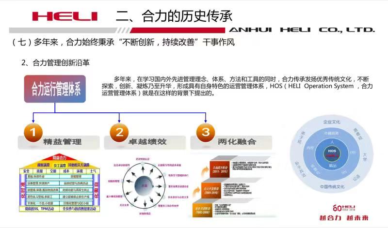 合力副總經(jīng)理都云飛介紹了卓越績效模式導(dǎo)入、推進、成效和體會;集團政治處處長金世林介紹了黨建與經(jīng)營融合的探索與實踐;研發(fā)部副部長畢勝介紹了IPD(集成產(chǎn)品開發(fā))管理體系建設(shè);信息化部副部長張紀九介紹了集團工業(yè)互聯(lián)網(wǎng)建設(shè);合力合肥鑄鍛廠廠長解明國介紹了創(chuàng)新引領(lǐng)傳統(tǒng)產(chǎn)業(yè)轉(zhuǎn)型升級之路;合力精益辦主任、企管部副部長陳軍介紹了企業(yè)基于方針目標管理體系的合力精益實踐。