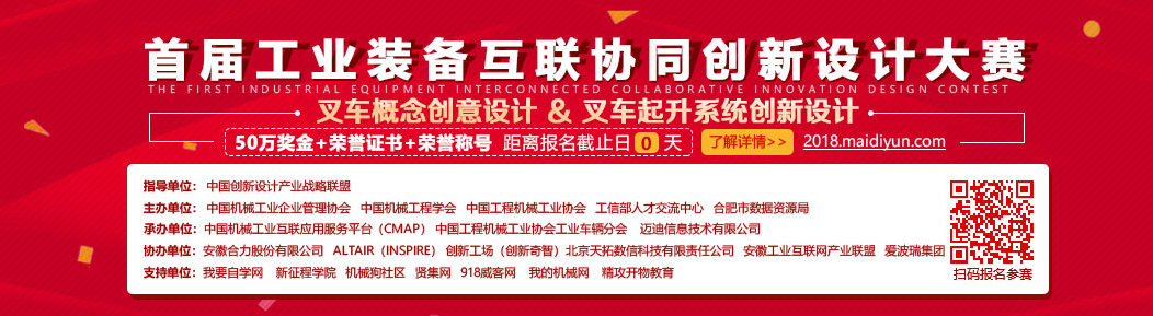 首屆工業(yè)裝備互聯(lián)協(xié)同創(chuàng)新設(shè)計(jì)大賽(叉車專題賽)是適應(yīng)形勢(shì),適應(yīng)發(fā)展,適應(yīng)需要,應(yīng)運(yùn)而生的一屆全新賽事,本屆競(jìng)賽是與以往多次組織的賽事完全不同的一次大賽,是主辦方通過中國機(jī)械工業(yè)互聯(lián)應(yīng)用服務(wù)平臺(tái)(CMAP)為本次大賽提供資源平臺(tái),由CMAP邁迪云和設(shè)計(jì)工具(邁迪設(shè)計(jì)包、Inspire等)服務(wù)整個(gè)賽事;是開放的、沒有圍墻場(chǎng)地、沒有固定時(shí)點(diǎn)、凸顯設(shè)計(jì)水平的競(jìng)賽。